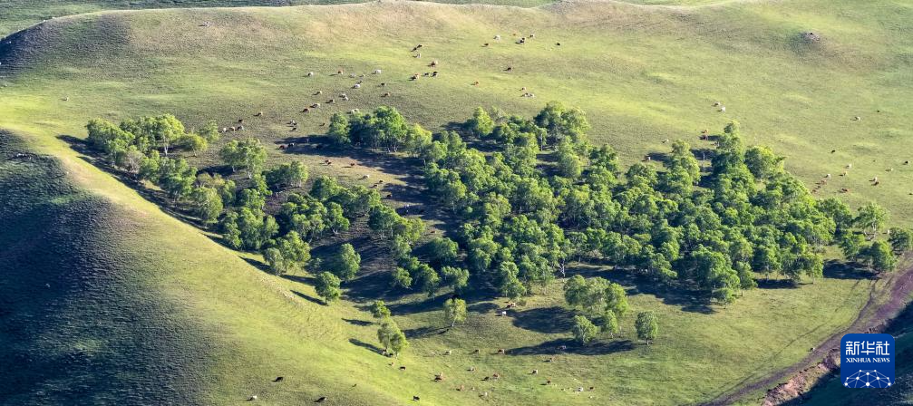 这是6月5日在内蒙古大青山国家级自然保护区拍摄的草原风光(无人机照片)。