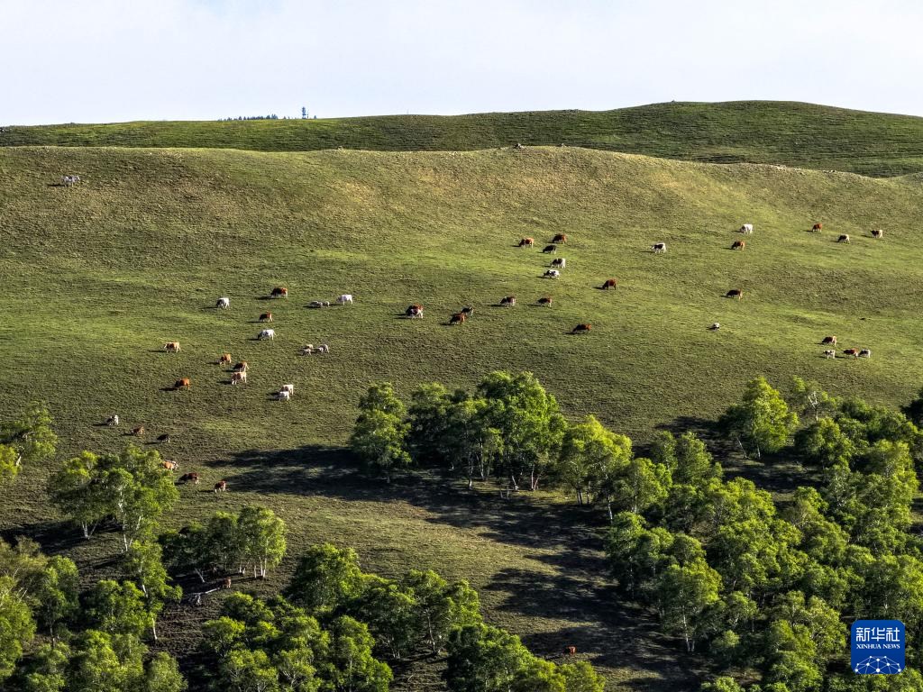 6月5日,牛群在内蒙古大青山国家级自然保护区吃草(无人机照片)。
