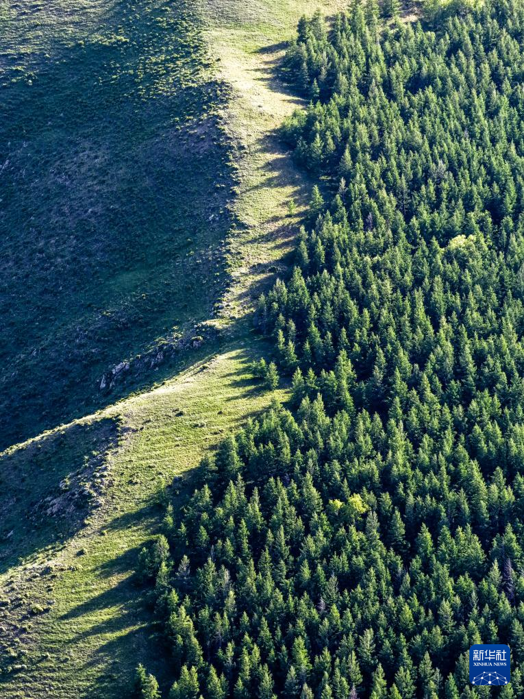 这是6月5日在内蒙古大青山国家级自然保护区拍摄的草原风光(无人机照片)。