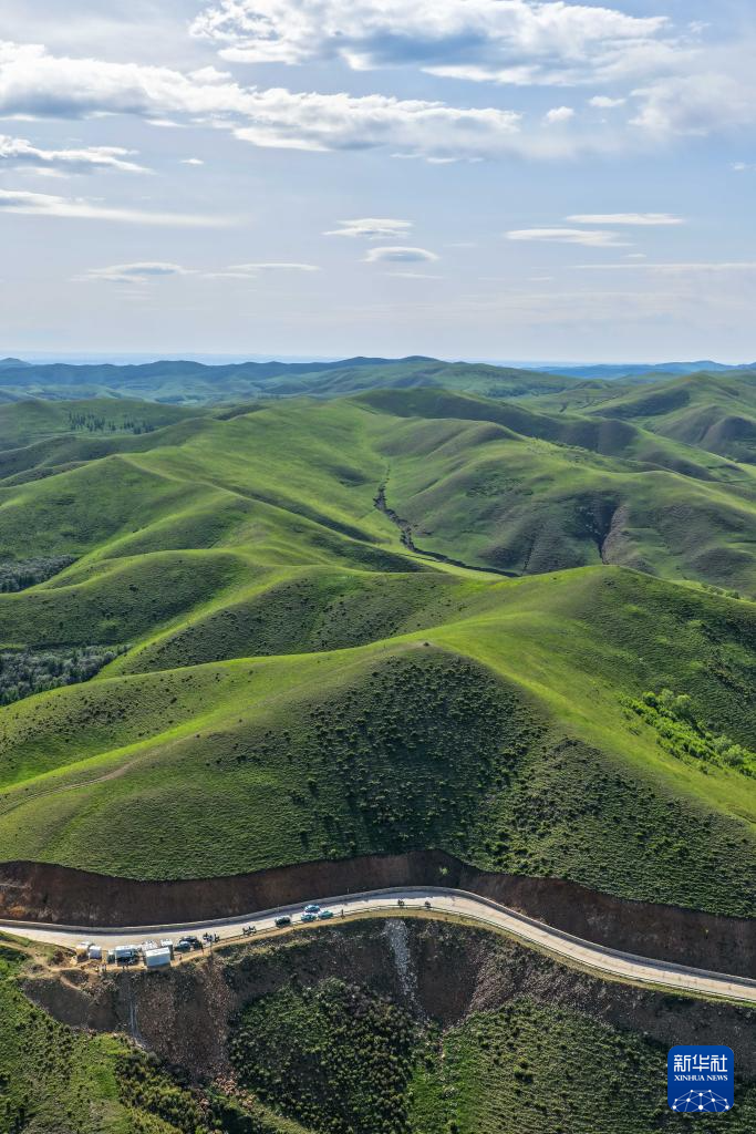 6月5日,游客在内蒙古大青山国家级自然保护区游玩(无人机照片)。