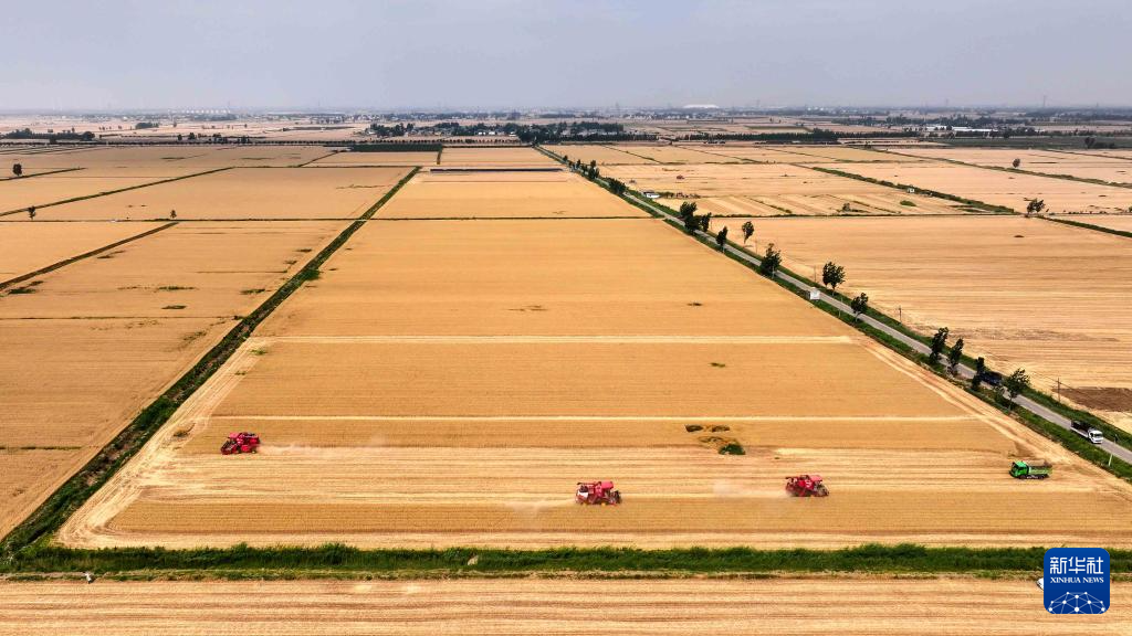 “三夏”时节,山东省济宁市嘉祥县68万亩小麦陆续成熟,当地农民抢抓晴好天气收获小麦、播种秋粮,田间地头一派农忙景象。