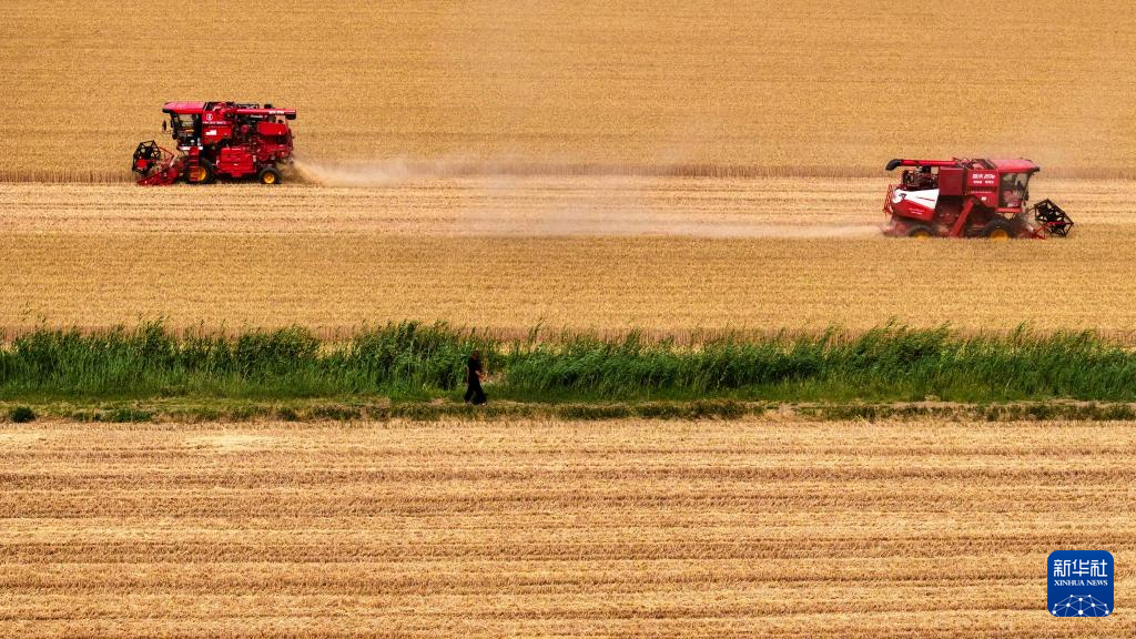 “三夏”时节,山东省济宁市嘉祥县68万亩小麦陆续成熟,当地农民抢抓晴好天气收获小麦、播种秋粮,田间地头一派农忙景象。