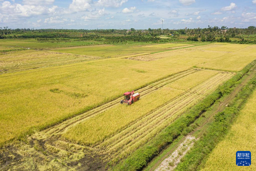 近日,海南省海口市琼山区红旗镇墨桥村“琼山福稻”迎来收获季,农民们趁着晴好天气抓紧收割。