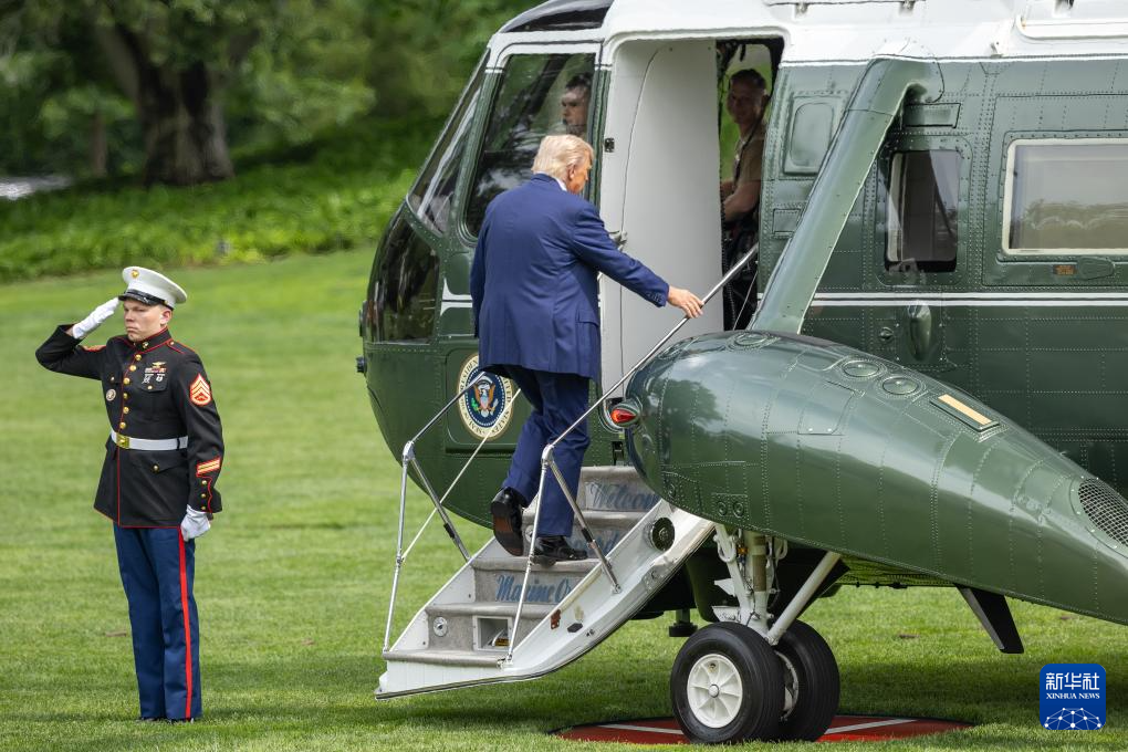 6月6日,在美国华盛顿白宫,美国总统特朗普登上“海军一号”直升机。