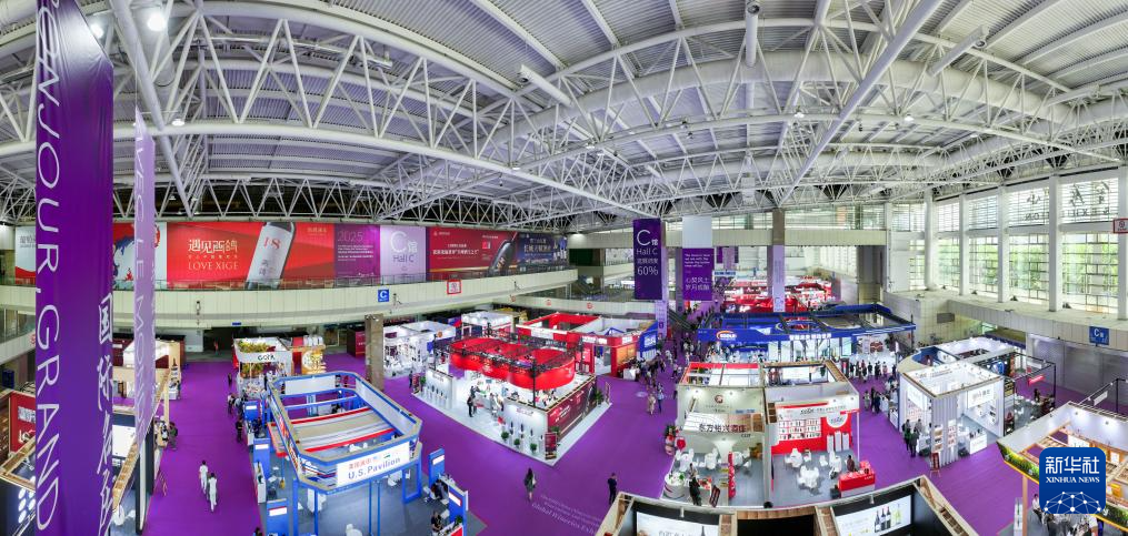 这是博览会期间举行的国际葡萄酒名庄名酒展(6月9日摄,无人机全景照片)。