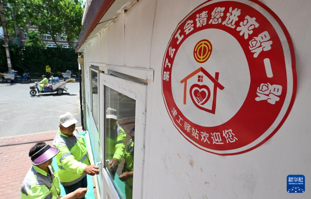 6月7日,环卫工人走进位于天津市河北区昆峰里小区的一处工会驿站。