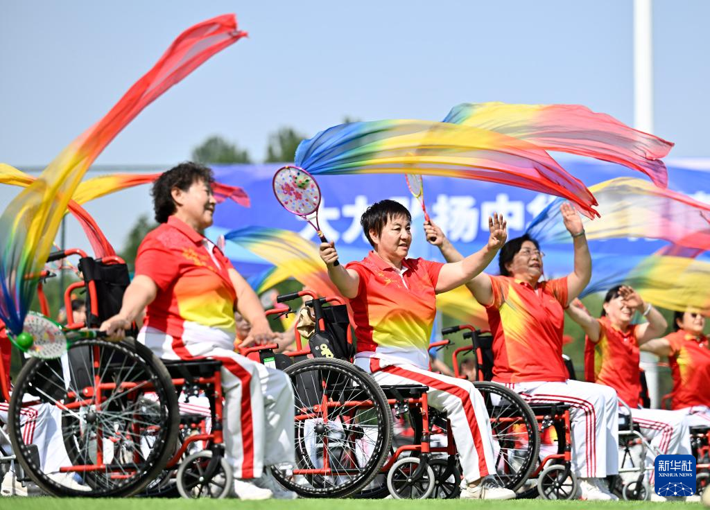6月10日,群众在活动上参加残疾人柔力球展演。