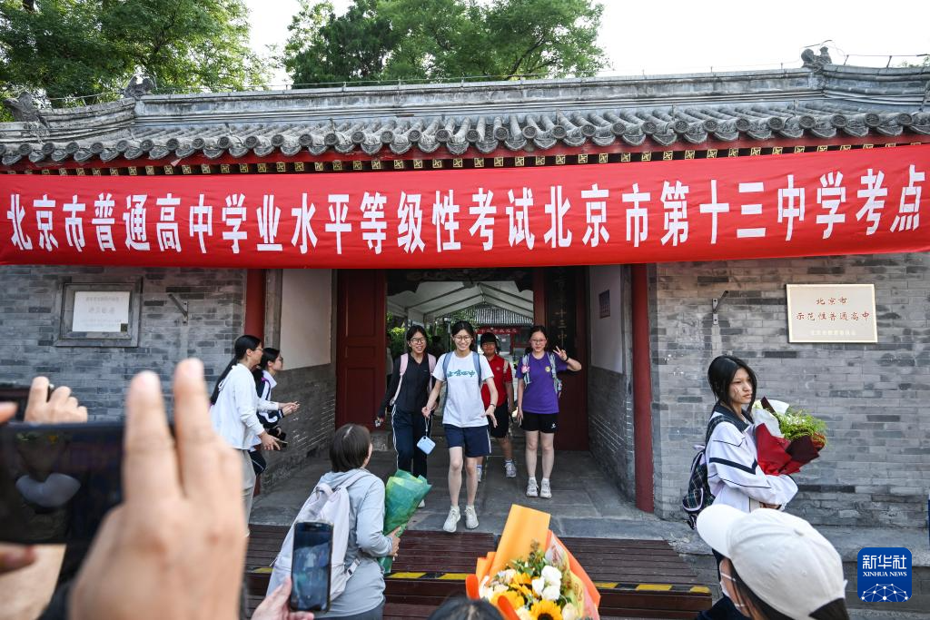 6月10日,考生走出北京市首都师范大学附属中学考点。