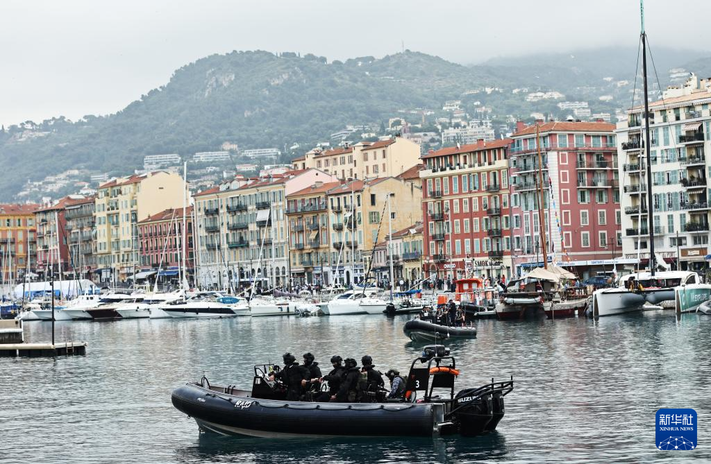 6月9日,在法国尼斯,警察在第三届联合国海洋大会会场外警戒。