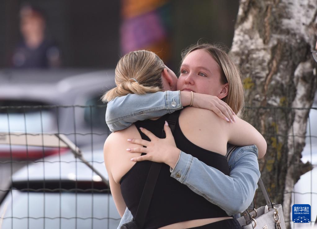 6月11日,在奥地利格拉茨,人们在发生枪击事件的学校外互相拥抱安慰。