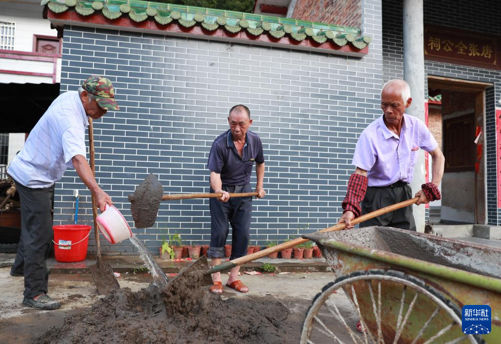 6月10日,仙溪村的老人在一起做义务劳动。