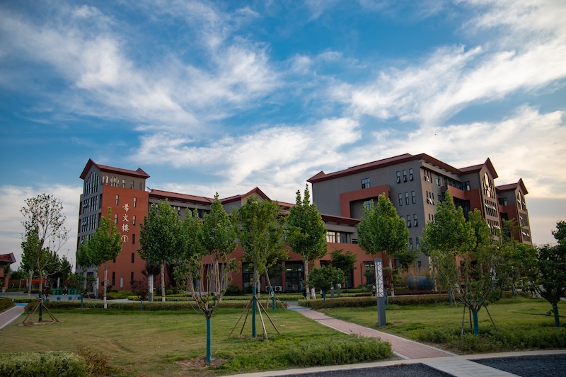 这所堪称全国高校唯一的全景式宋代街市实景教学区,是由浙江大学建筑设计院团队设计,复刻《清明上河图》建筑风貌,教学楼以范仲淹、王安石等宋代名人命名,道路命名为“崇文大道”“尚贤路”,景观打造“快哉亭”“群贤广场”,实现“建筑可阅读、景观能育人”。在人文景观方面,学校建设北固亭、快哉亭、群贤广场、众技广场、日新广场,打造寓意“开拓进取、开放包容、开明务实、开智创新”的主题雕塑,营造春风化雨、润物无声的育人环境。