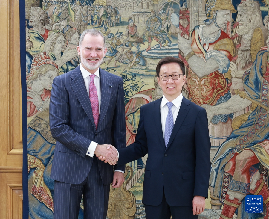 费利佩六世国王请韩正转达对习近平主席的良好祝愿,表示今年以来,双方高层互动频密,双边关系呈现积极良好发展势头。西班牙愿同中方进一步加强沟通合作,推动两国关系更加紧密发展。当前世界正在经历复杂变化,中国在此进程中发挥着重要积极稳定作用。西班牙支持多边主义和自由贸易,愿同中方加强在多边机构沟通协作,共同维护国际多边贸易秩序和规则,促进世界可持续发展。