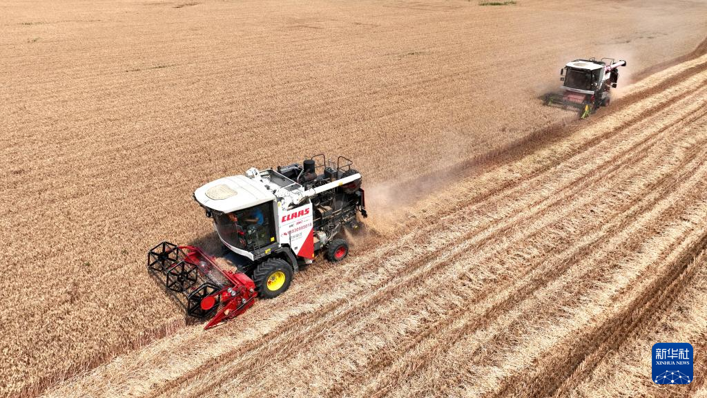 时下,河北省邢台市隆尧县61万亩小麦正值收获季,当地农民抢抓晴好天气开展机收作业。