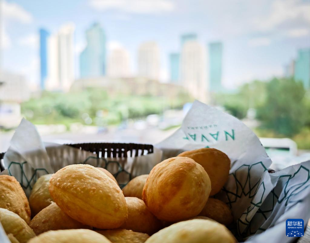 这是2025年6月14日在哈萨克斯坦首都阿斯塔纳拍摄的小吃“包尔萨克”。