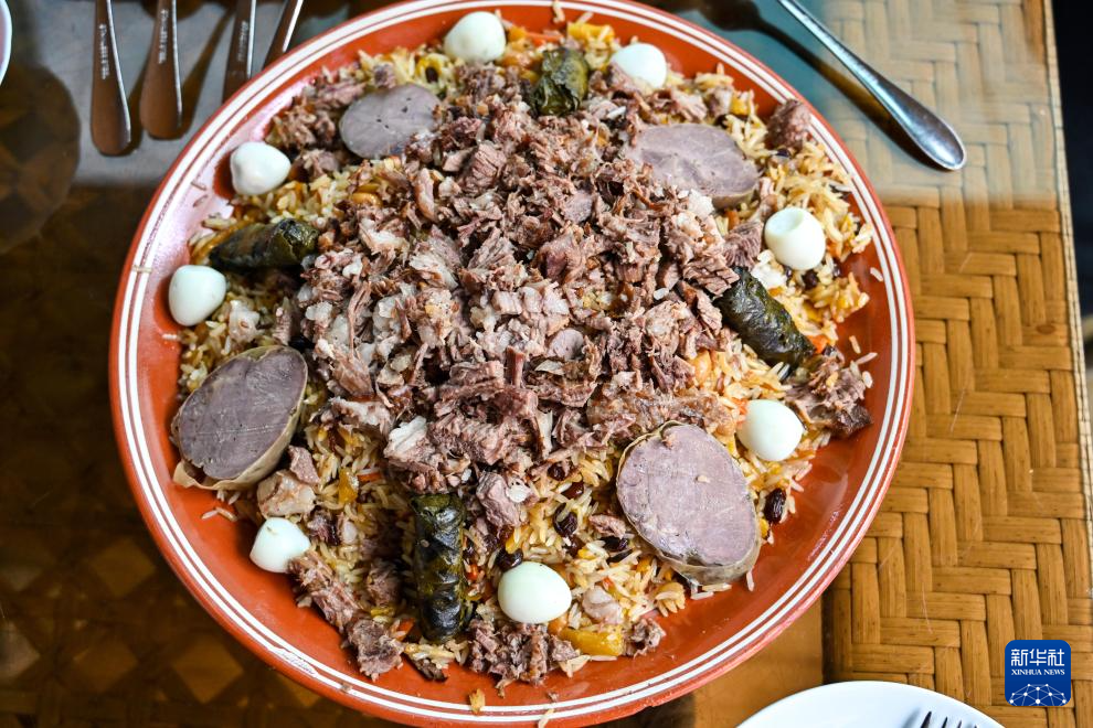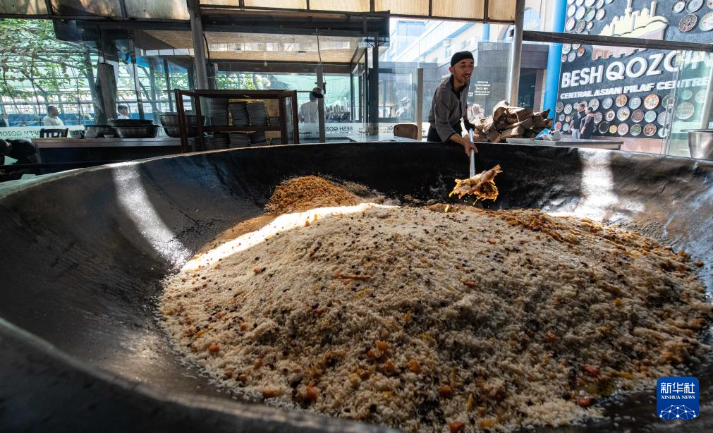 这是2024年8月27日在乌兹别克斯坦首都塔什干拍摄的抓饭。
