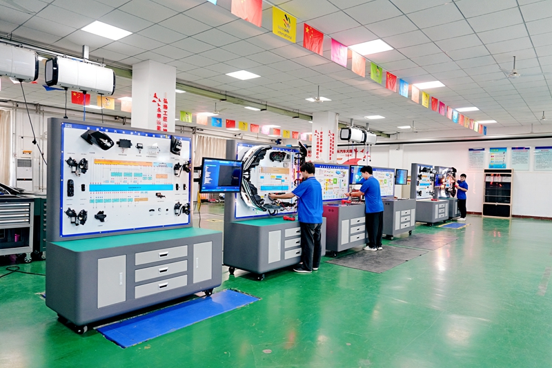 针对工业机器人、新能源汽车等新兴产业,该校创新“数智融合、精准育训、生态共建”人才培养模式,与郑州宇通、新航集团等龙头企业共建4大产业学院,开发“工学交替、能力递进”课程体系。工业机器人虚拟仿真实训基地纳入教育部重点项目,学生可在1:1复现的企业生产线环境中实训。2024年,第四届全国新能源汽车关键技术技能大赛河南省选拔赛落地学校;在2024年世界职业院校技能大赛总决赛中,该校师生共获得金奖2项、银奖3项、铜奖2项,参加的7个赛项全部获奖。