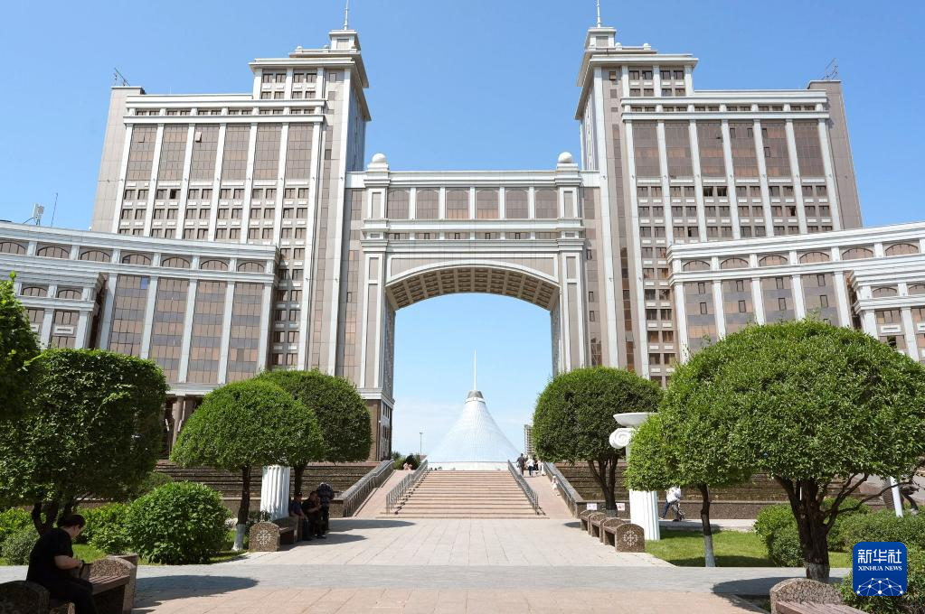 这是6月14日在哈萨克斯坦首都阿斯塔纳拍摄的总统府。