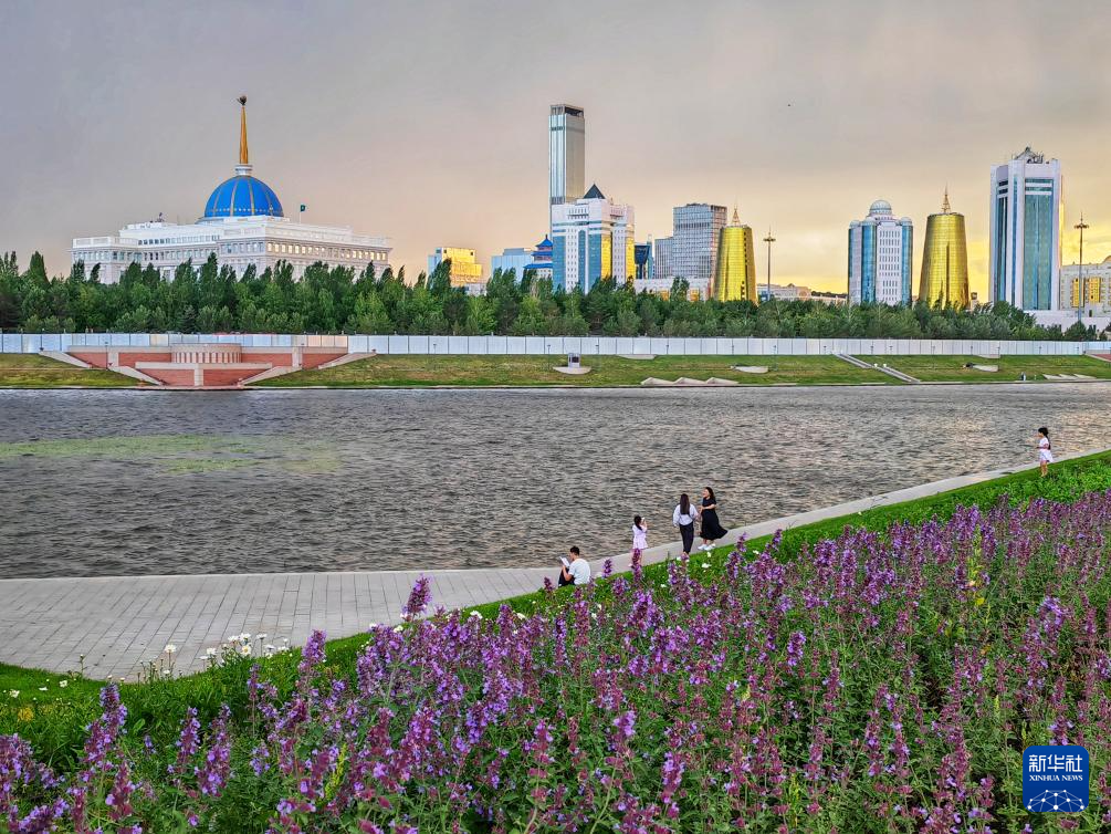夏日的阿斯塔纳,天气晴好、鲜花盛开,天际线在蓝天白云的映衬下格外美丽。