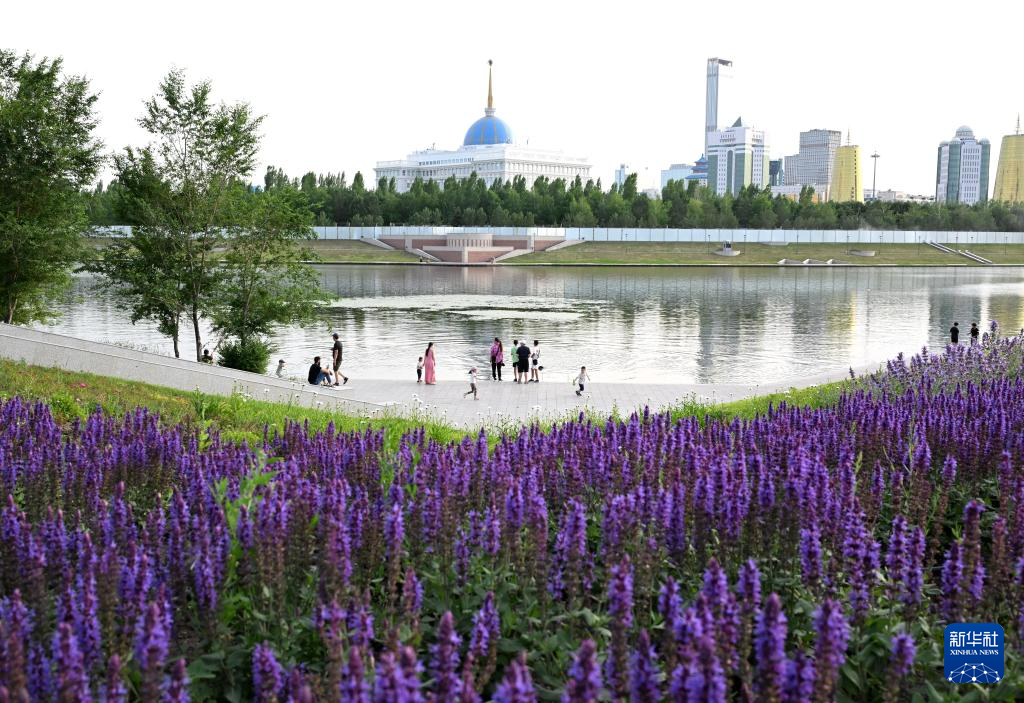 夏日的阿斯塔纳,天气晴好、鲜花盛开,天际线在蓝天白云的映衬下格外美丽。