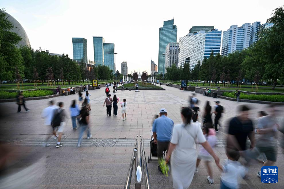6月11日,人们走在哈萨克斯坦首都阿斯塔纳市中心。