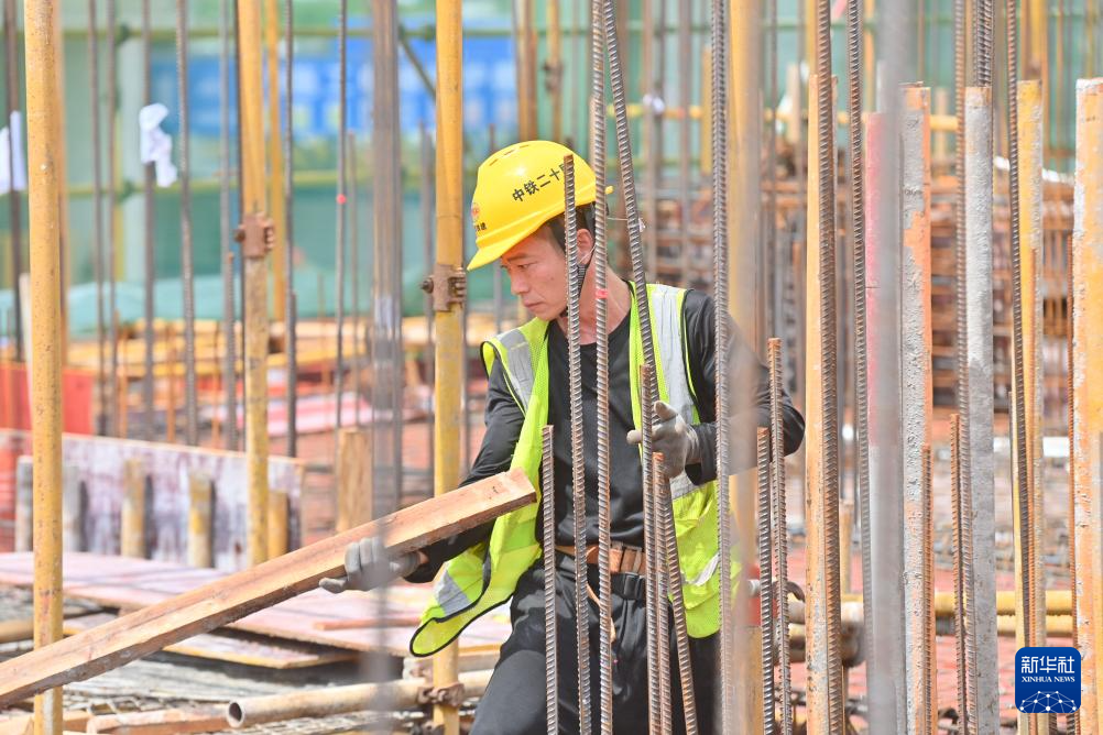 6月16日,中铁二十局工人在南宁市鸡村城中村改造项目建设现场施工作业。
