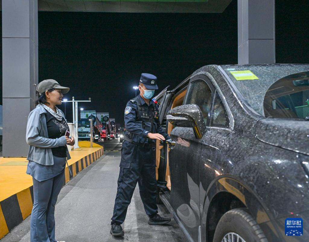 6月11日凌晨,在新疆霍尔果斯公路口岸,移民管理警察对高云运送的车辆进行检查。