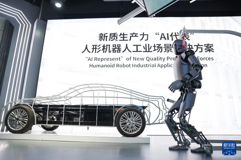 这是6月17日在北京经开区的机器人大世界拍摄的优必选人形机器人工业场景解决方案演示。