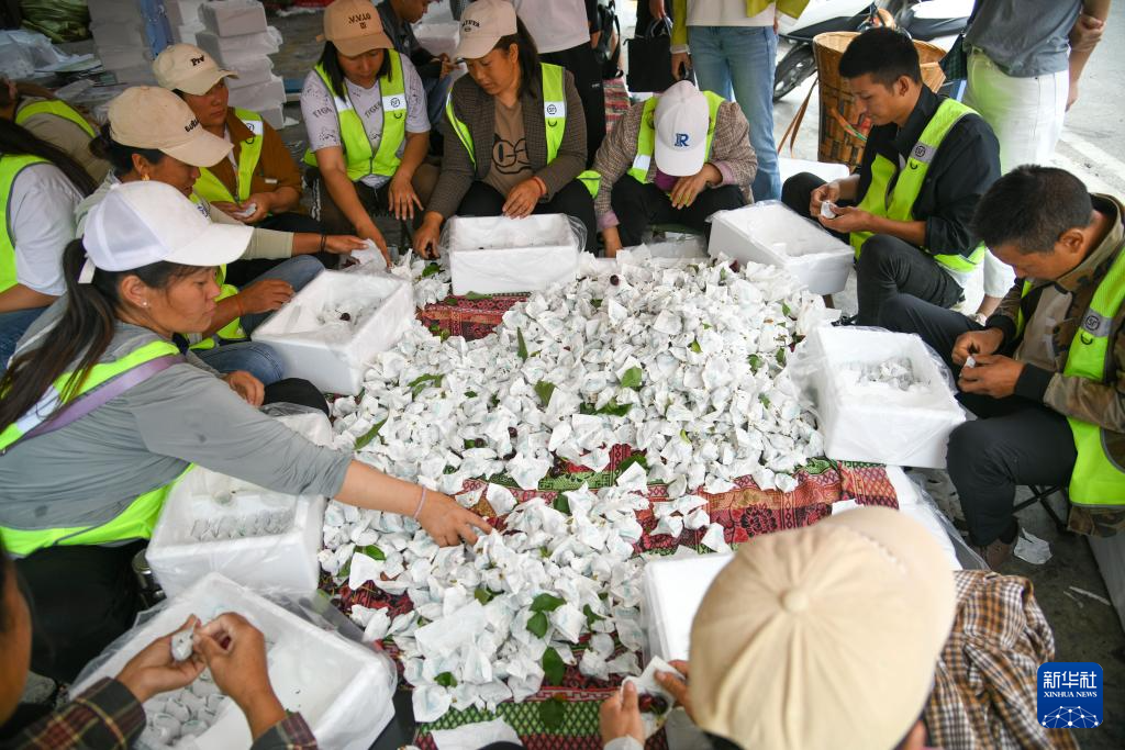 6月16日,在汉源县清溪镇一处快递发货点,工作人员在忙着打包樱桃发货。