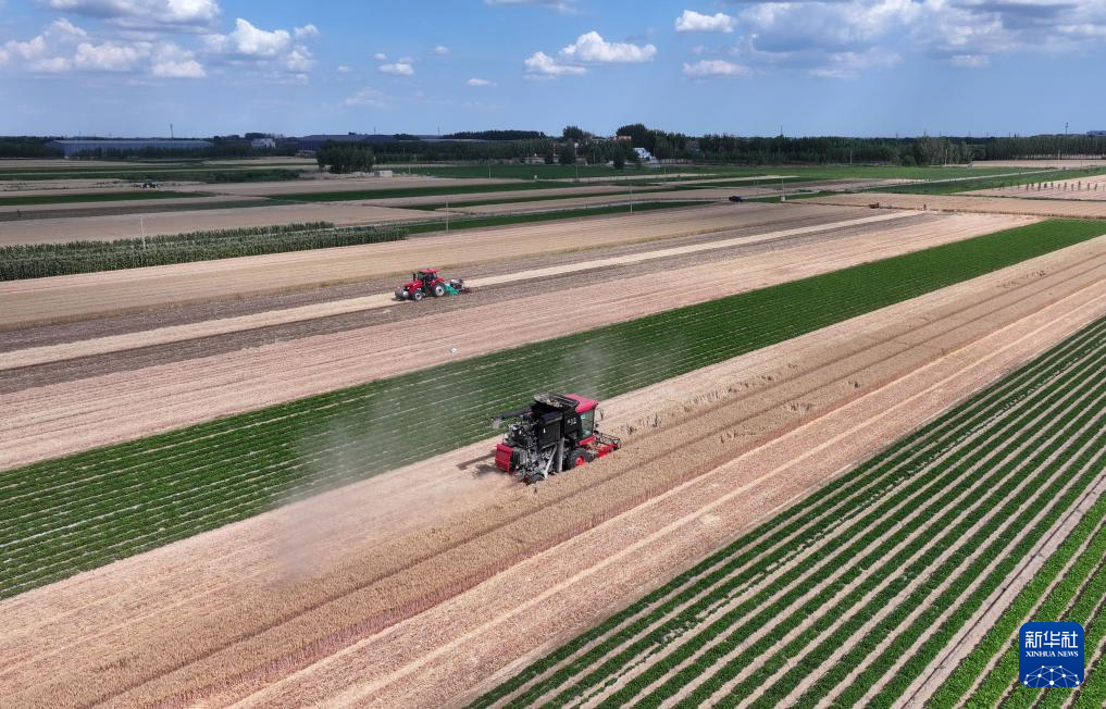 近日,河北省唐山、秦皇岛等冀东地区的小麦迎来收获季,当地农民抢抓晴好天气开展机收作业,田间呈现一派繁忙的景象。