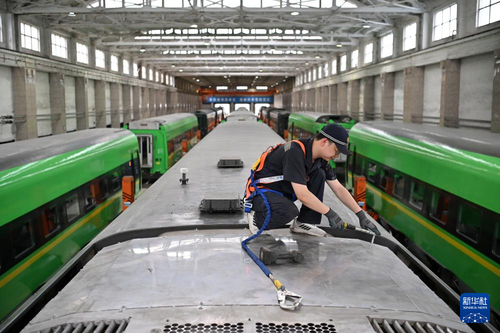 连日来,在中国铁路太原局集团有限公司太原车辆段,检修人员加紧对列车进行检修、维护、全方位排障,为即将到来的暑运做准备。