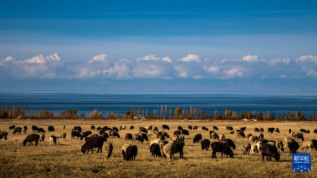 这是在吉尔吉斯斯坦伊塞克湖拍摄的沿岸秋色(2012年10月26日摄)。