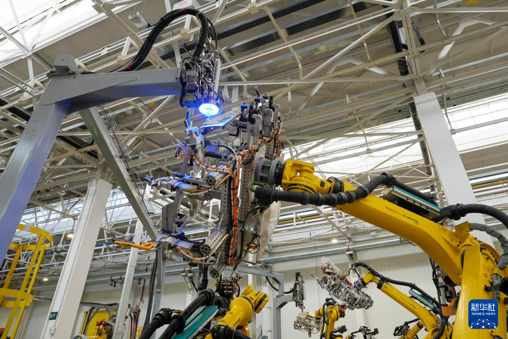 6月18日拍摄的理想汽车北京智能制造基地焊装车间。