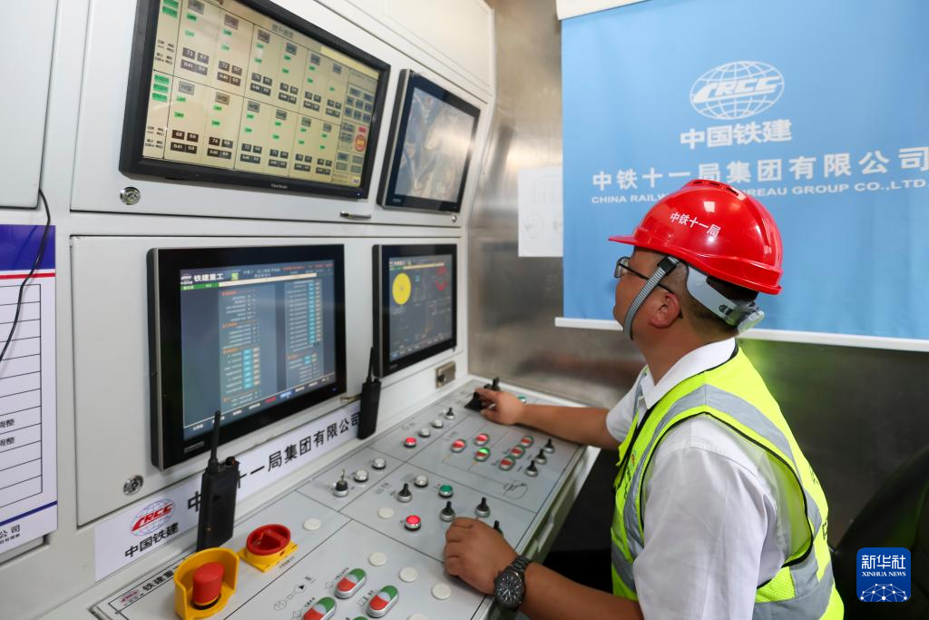6月18日,竖井掘进机操作手在调整数据参数。