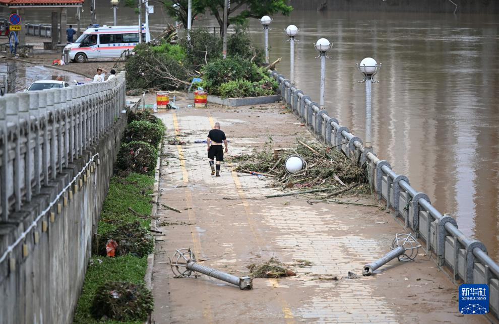 6月19日,在广东省肇庆市怀集县城的沿江西路,江边设施被洪水损坏。