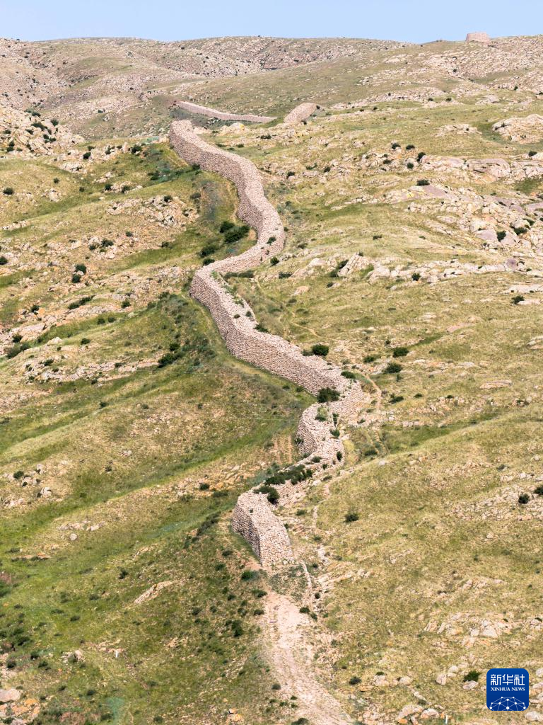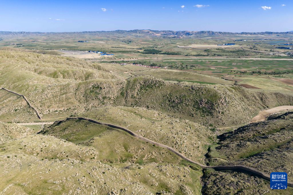 这是6月21日拍摄的固阳秦长城天盛成段局部(无人机照片)。