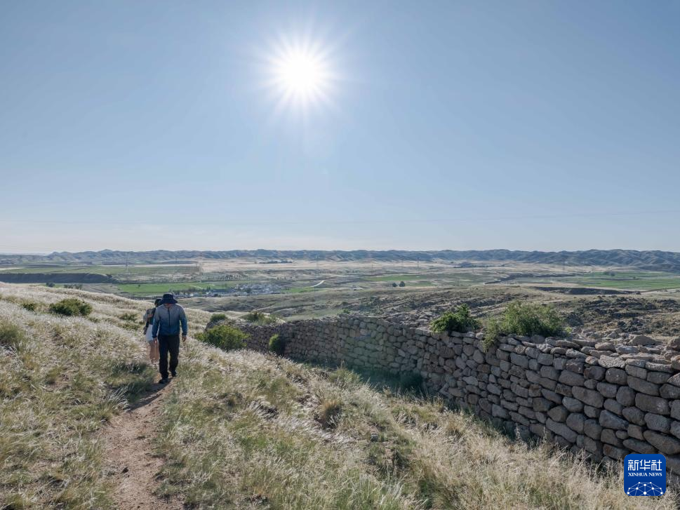 6月21日,游客在固阳秦长城天盛成段参观。