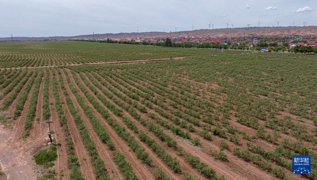 这是6月20日在宁夏同心县河西镇同德村拍摄的枸杞种植基地(无人机照片)。