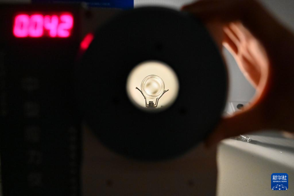 在位于山西省祁县的国家玻璃器皿产品质量监督检验中心,工作人员对玻璃器皿产品进行检测(6月11日摄)。