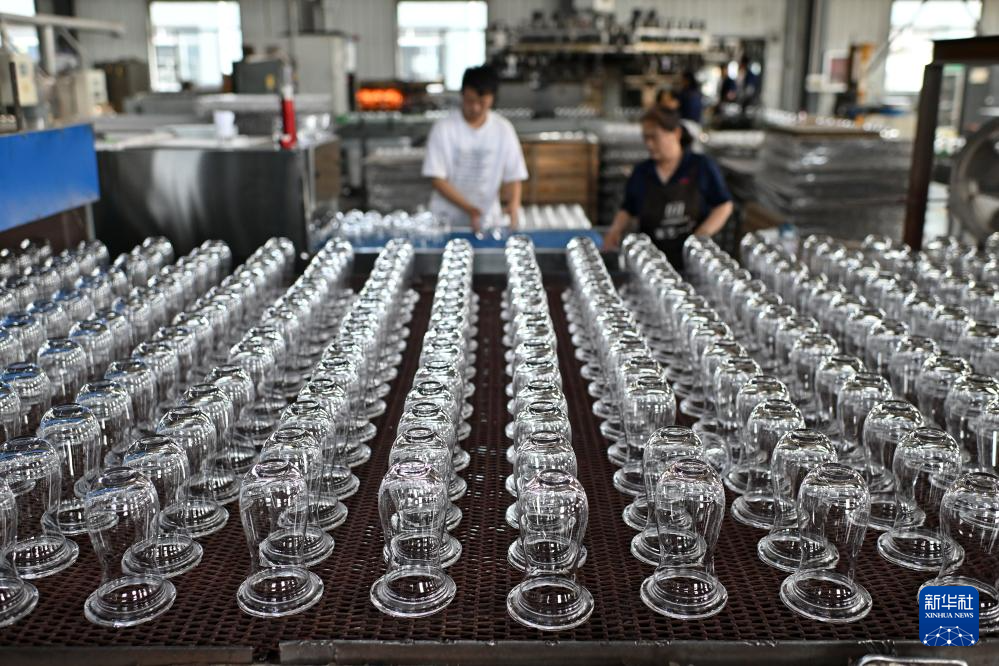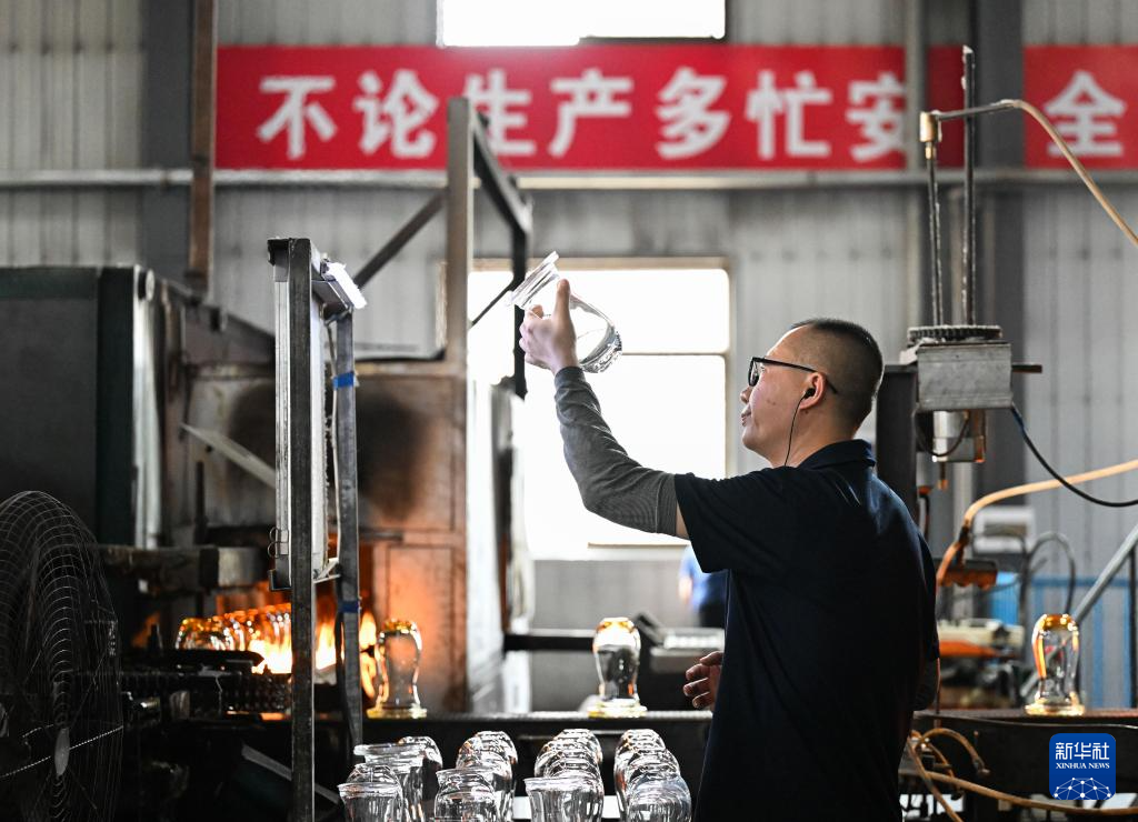位于山西省祁县的山西宏艺玻璃器皿有限责任公司生产线一景(6月12日摄)。
