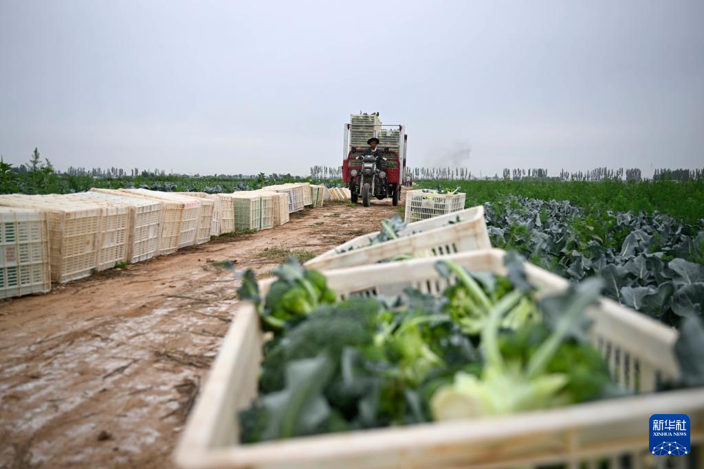 6月20日,工人在位于银川市贺兰县立岗镇的供港蔬菜种植基地运输西兰花。