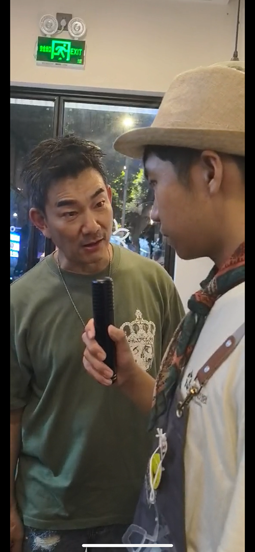 6月8日当晚,店里有个孤独症青年店员王杰(化名)过22岁生日,大家都准备为他庆生。外面突然来了4辆车,大约20个人,他们下车后,之前对接的小妹上来对张秀丽说,“今天给你们店员生日准备一个礼物。”后任贤齐就从车上下来,张秀丽当场产生疑问“这是模仿秀吧。”就上前与任贤齐握手说“你好你好”,近距离一看,这就是任贤齐本人。这时任贤齐示意她不要说话,他要给王杰一个惊喜。