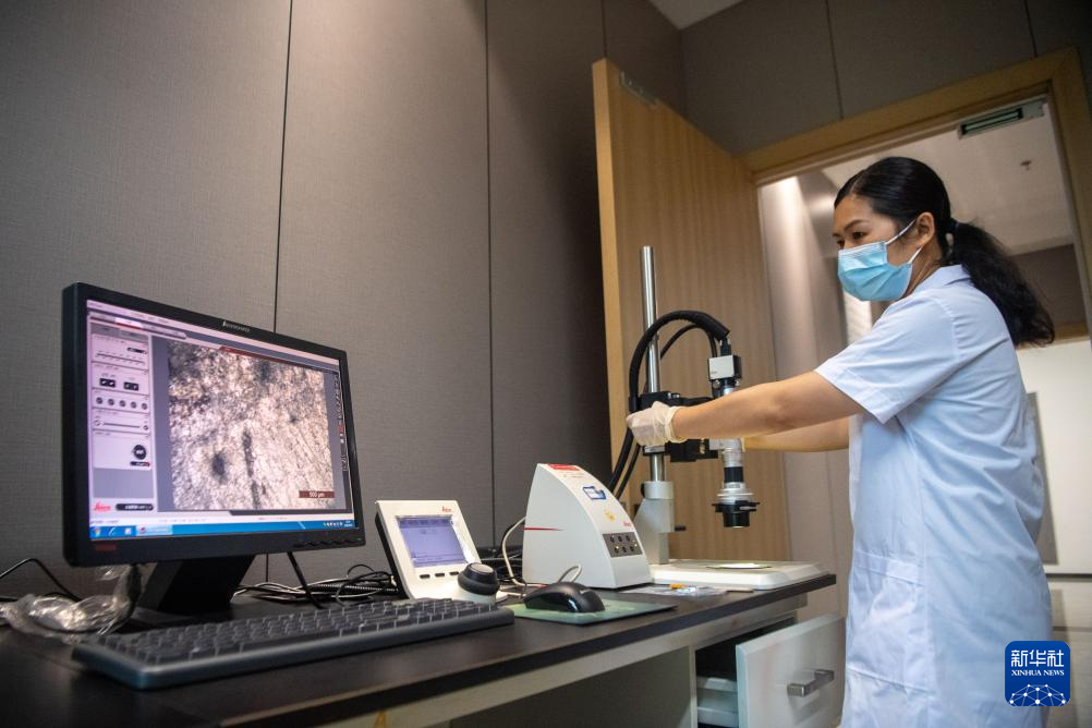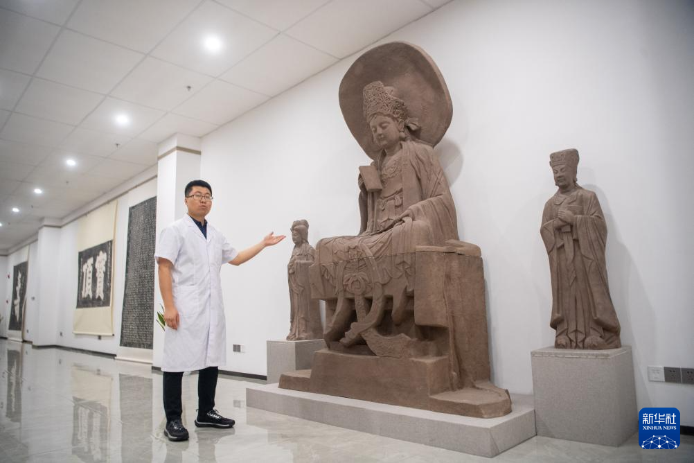 6月24日,在大足石刻文物医院,工作人员对石质文物进行修复并采集数字化信息。