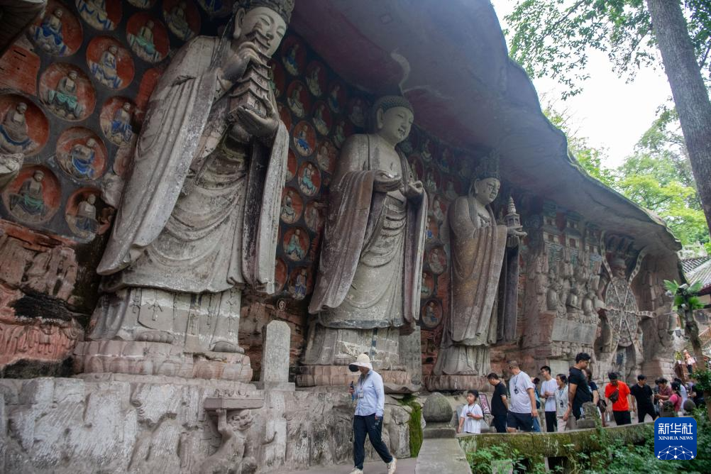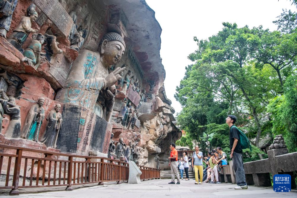 6月24日,游客在大足石刻景区参观。