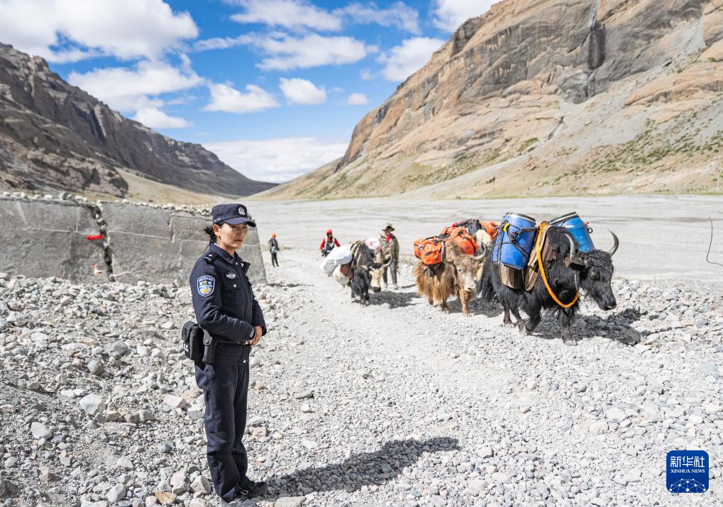 巴桑普赤在冈仁波齐转山徒步道上执勤(6月23日摄)。