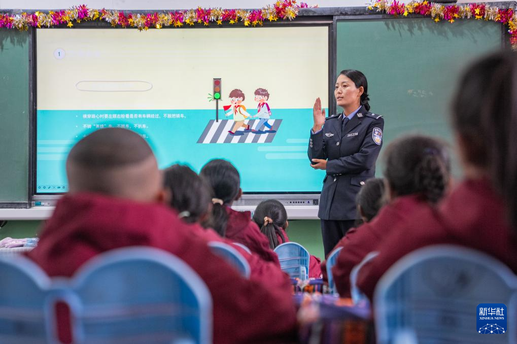 慢慢地,巴桑普赤找到了自己的节奏。两年的基层工作经验,以及曾经在教师岗位锻炼出的沟通能力,让她在工作中游刃有余。去学校普法,孩子们总喜欢围绕在她身边,叽叽喳喳地叫她“赤赤姐姐”;去景区救援,游客们事后送锦旗时,总会多夸两句救援队伍里暖心的“警察阿佳”(“阿佳”在藏语里是姐姐的意思);在社区排查,群众也愿意和笑容满面的她多聊上几句家长里短。