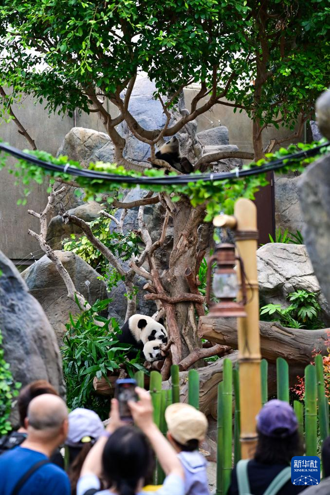 在香港海洋公园,有两位为人熟知的“流量明星”:家姐“加加”爱爬树;细佬“得得”爱撒娇。这两只“港产”龙凤胎大熊猫萌态百出,引得采访团成员不停拍摄记录。香港海洋公园公司董事局主席庞建贻表示,今年内地“五一”假期期间,园区总收入同比增长超四成,售出的产品中超过半数与大熊猫相关。“接下来我们会推出更多多元化的产品,发展‘熊猫经济’。”
