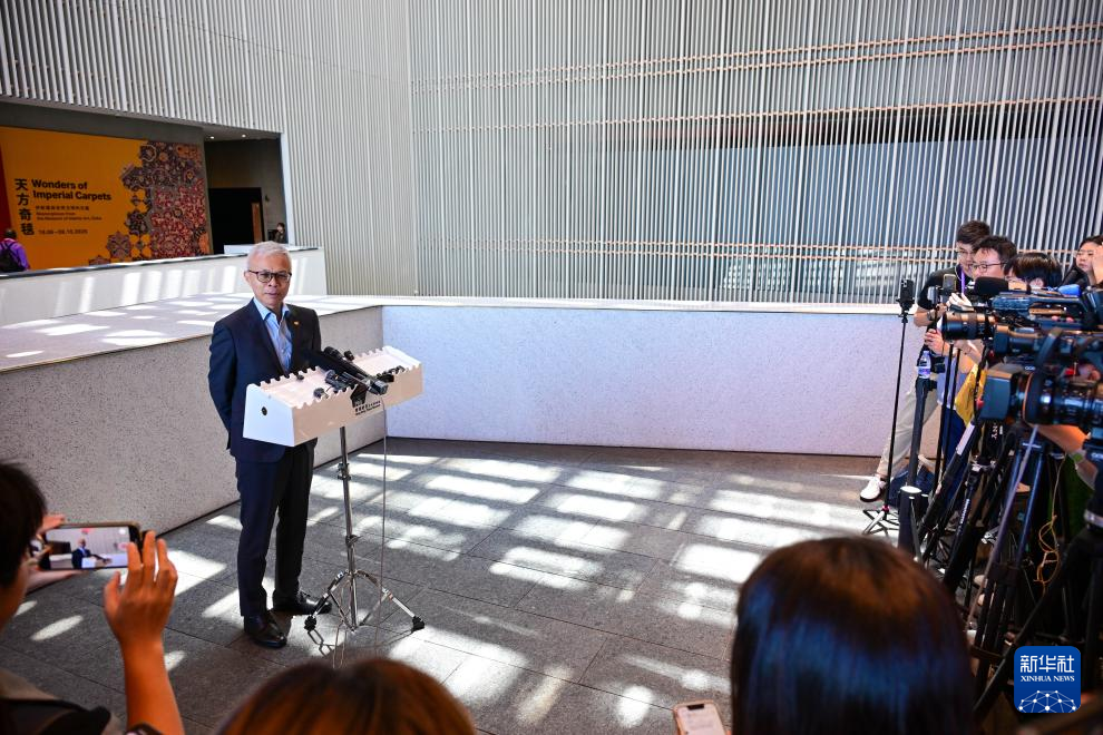 6月25日,香港故宫文化博物馆馆长吴志华(左)向采访团成员介绍情况。新华社记者 朱炜 摄