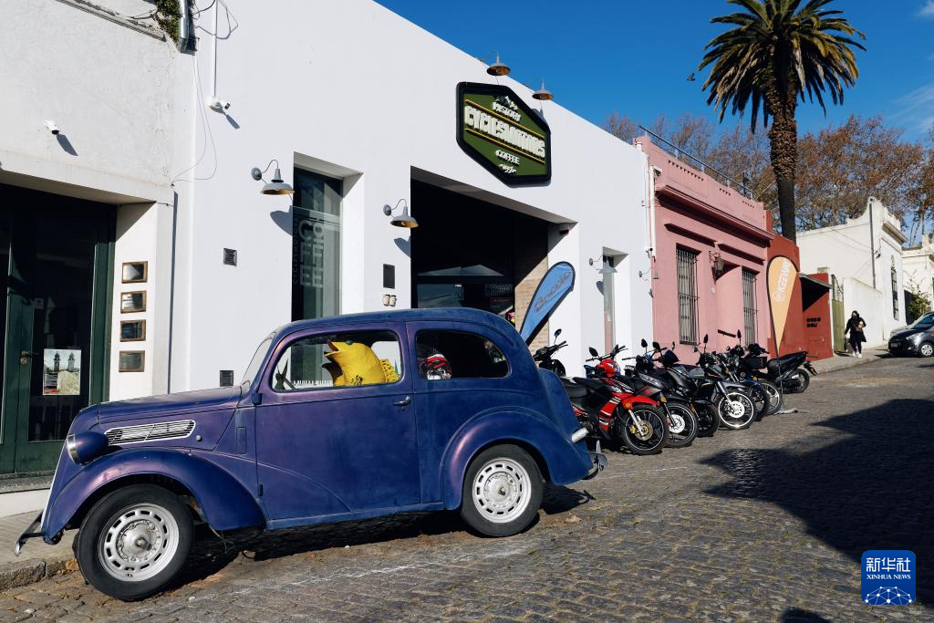 这是6月25日在乌拉圭科洛尼亚老城区拍摄的街景。