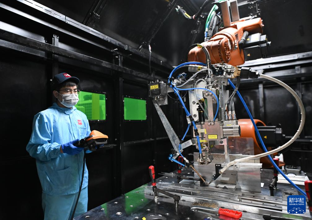 6月27日,在位于惠州的广东利元亨智能装备股份有限公司,工作人员在进行激光填丝焊前的参数设置。